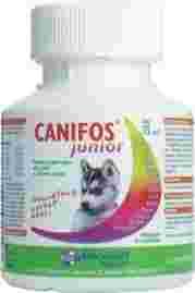 Canifos junior jest przeznaczony dla młodych psów w okresie intensywnego wzrostu oraz dla suk szczennych i karmiących. Dostarcza odpowiednio zbilansowany wapń i fosfor oraz makro i mikroelementy niezbędne do prawidłowego wzrostu kości. Odpowiednia proporcja wapnia do fosforu wpływa na prawidłowy rozwój młodego organizmu. Canifos junior ponadto posiada w swym składzie naturalny, całkowicie oczyszczony polisacharyd β-1,3/1,6-D-glukan, wyizolowany z ze ścian komórkowych drożdży Saccharomycescerevisiae, stymulujący naturalne systemy obronne organizmu.