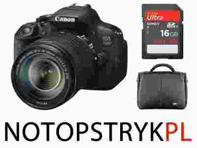Akumulator LP-E8, ładowarka LC-E8, pasek na ramie, kabel USB, kabel wideo, instrukcja, sterowniki, oprogramowanie: