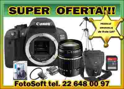 W skład zestawu wchodzi: aparat canon 650D, obiektyw Tamron 18-200, karta 8 GB ( możliwośc dopłaty 30 zł do 16 GB lub 70 zł do 32 GB, torba, zestaw czyszczący, filtr UV, statyw, czytnik kart pamięci, oryginalny akumulator,