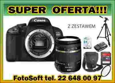 Zestaw zawiera: Torba, statyw, filtr UV, zestaw czyszczący, czytnik kart pamięci, karta pamięci SanDisk 16GB (możliwa dopłata 30 zł do 32 GB)