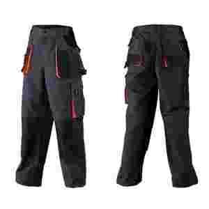Kieszenie i kolana są dodatkowo wzmocnione czarną tkaniną o wysokim stopniu odporności na przetarcia oraz uszkodzenia ostrymi krawędziami.