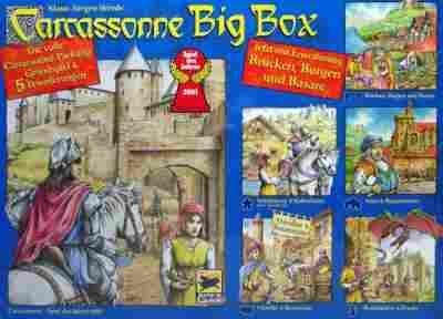 Big Box 3, prócz podstawowego zestawu Carcassonne zawiera pięć dodatków: