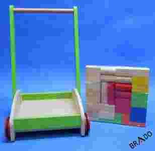 CAROUSEL DREWNIANY WÓZEK PCHACZ + KLOCKI DREWNIANE