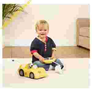 Zdalnie sterowany samochód jest doskonałym wprowadzeniem do jazdy dla małego dziecka. Samochód jeździ do przodu i obraca się wokół. Pilot i jego przyciski są duże i nie sprawią problemu z ich poznawaniem. Za ich pomocą dziecko może zapalić światła, użyć klaksonu, "odpalić" samochód a przede wszystkim samo "prowadzić" samochód.
