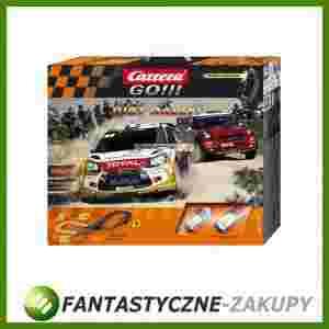 Analogowy zestaw Carrera GO!!! Tor o długości 3,6 metra. W wyposażeniu toru: zasilacz, kontrolery, licznik okrążeń, wiadukt oraz zwężenie i elementy toru imitujące nawierzchnię szutrową. Skala 1:43 Pojazdy wykonane na licencji WRC : Citroen DS3 WRC i MINI Countryman WRC.