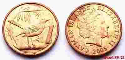 CAYMAN ISLANDS - KAJMANY 1 CENT 2005 PTAK DROZD