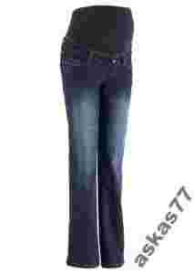 Dżinsy ciążowe z wygodnym elastycznym i regulowanym na szerokość paskiem dzianinowym w talii. Dekoracyjne kontrastowe szwy. Nogawki z szerokim wywijanym mankietem. Z przodu dwie wpuszczane kieszenie, z tyłu dwie kieszenie.