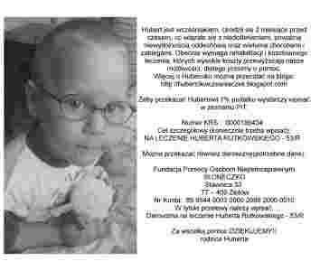 Hubertowi można również pomóc wpłacając dowolną kwotę na jego subkonto w Fundacji „Słoneczko” bez uczestnictwa w aukcji