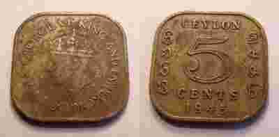 Cejlon, 5 cents, 1945 r.