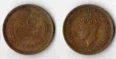 CEJLON BRYTYJSKI 1943 50 CENTS