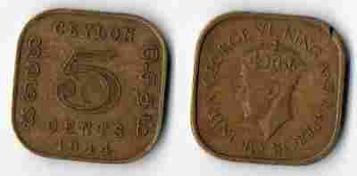 CEJLON BRYTYJSKI 1944 5 CENTS