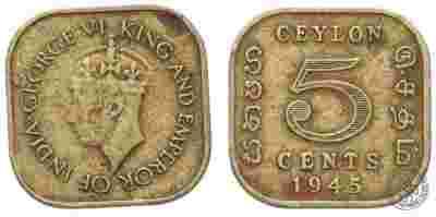Cejlon - moneta - 5 Centów 1945