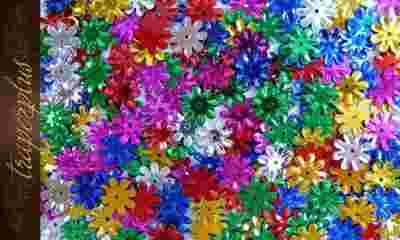 Cekiny w kształcie kwiatków (miks kolorów) do różnego rodzaju zdobień i dekoracji, np. kartek świątecznych, bombek, scrapbookingu, filcowania, itp.