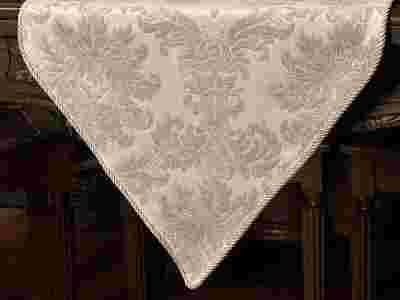 Materiał:   Bardzo dobra gatunkowo i piękna tkanina żakardowa. Brzeg bieżnika wykończony jest ozdobnym sznurem
