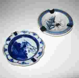DWIE STARE CERAMICZNE POPIELNICZKI ZDOBIONE