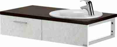 Fronty wykonane z płyty MDF jednostronnie laminowanej o grubości 16 mm. Korpus wykonany z płyty wiórowej dwustronnie laminowanej kasztan venge grubości 18 mm. Uchwyty dwupunktowe chrom połysk.