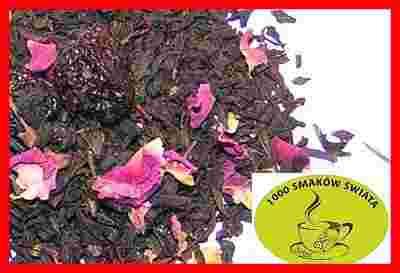 Skład: herbata czarna, wiśnia, płatki róży damaceńskiej, aromat.