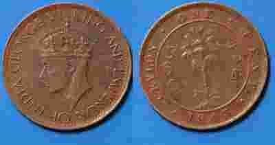 Ceylon Cejlon (Anglia) 1 Cent 1943 rok od 1zł BCM
