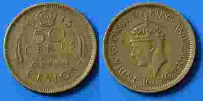 Ceylon Cejlon (Anglia) 50 Cents 1943 r od 1zł BCM