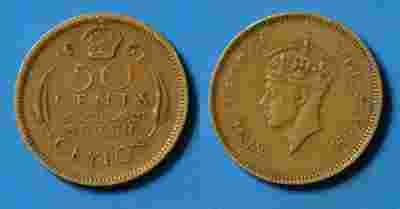 Ceylon Cejlon (Anglia) 50 Cents 1951 r od 1zł BCM