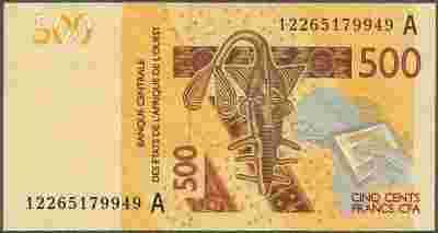 Zalecam zapoznanie się ze stroną "o mnie". Jest tam ogólna informacja o aukcjach, koszty przesyłek i numer konta do wpłaty. Po wygraniu aukcji proszę też przeczytać informację dla kupującego, która będzie załączona do komunikatu z Allegro. Banque Centrale des Etats de l'Arfique de l'Ouest Banknot najnowszej emisji, po raz pierwszy nominał 500 franków w obecnej serii banknotów. czyli wydany przez Bank Centralny Krajów Afryki Zachodniej (w katalogu: West African States).