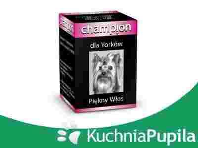 Preparat Champion Piękny Włos to zestaw witamin i minerałów opracowany specjalnie dla psów rasy Yorkshire Terrier. Zawiera cynk, biotynę, kwas pantotenowy oraz witaminy A i E. Regularne stosowanie preparatu zapewnia Yorkom piękny błyszczący włos i zdrową skórę.