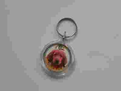 Breloczek akrylowy o średnicy 40mm z metalowym kółkiem.