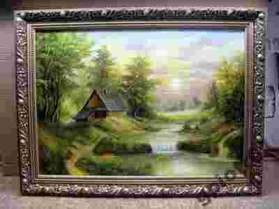 CHATA -OLEJ- PŁÓTNO -RAMA - 80 X60 CM