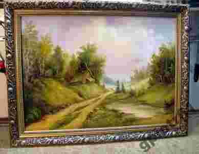 CHATA -OLEJ- PŁÓTNO -RAMA - 80 X60 CM