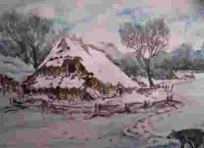 CHATA Z WILKIEM ,AKWARELA , BCM