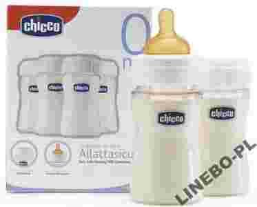 Idealnie pasują do laktatora i do nakrętek ze smoczkami. Posiadają nekrętki szczelnie zabezpieczające przechowywany w nich pokarm. Do zestawy dołączony jest anatomiczny smoczek oraz 12 łatwo odklejanych naklejek do zapisania daty. Butelki - pojemniki są wykonane z wysokiej jakości, trasparentnego i nietłukącego się tworzywa. Wyprodukowano we Włoszech.