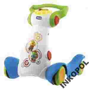 Popychając zabawkę maluch włącza sympatyczną melodię, której towarzyszą migające światła; rytm muzyki jest proporcjonalny do prędkości, z jaką idzie dziecko.
