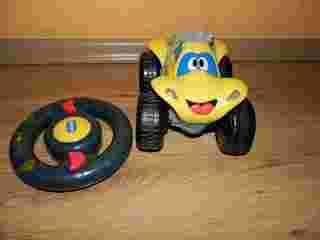 W zestawie pilot (brak klapki do baterii) ,autko niesprawne ale może tatuś złota rączka potrafi naprawić. Niesprawny układ napędowy ,ponieważ po włożeniu baterii działa klakson i światła tylko nie jeździ ale można go używać jako zwykłego samochodziku z napędem ciernym.