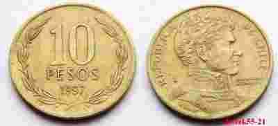 CHILE 10 PESOS 1997 HIGGINS WYSOKA DATA