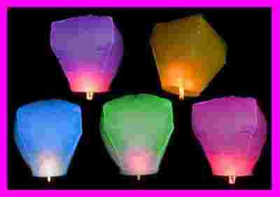 Latający lampion składający się z cienkiego materiału, drucików i kostki parafiny służącej jako paliwo.