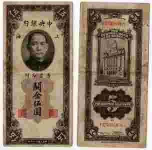 CHINY 1930 5 CUSTOMS GOLD UNITS