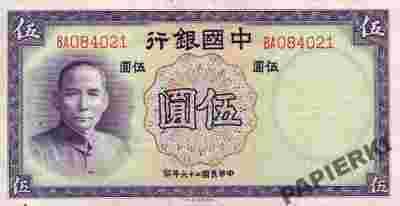 Chiny 5 Yuan 1937 P-80