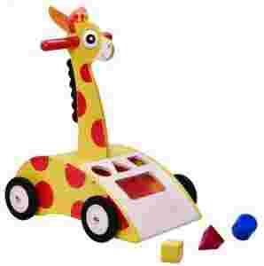 chodzik drewniany, odczepiane uszy, żyrafa z poliestru, śruby oraz 3 kolorowe klocki.