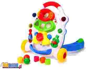Zabawka pomocna dziecku przy stawianiu pierwszych kroków będąc bezpiecznym i solidnym punktem oparcia. Pchacz posiada wesołe melodie, co jeszcze bardziej dopinguje dziecko do ćwiczenia techniki chodzenia.