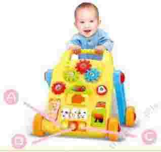 Stawianie pierwszych kroczków z tym muzycznym chodzikiem to doskonała zabawa dla malucha. Zanim dziecko zacznie chodzić może się bawić przyborami na przednim panelu. Chodzik można przekształcić w interaktywny stoliczek dzięki czemu dziecko może ćwiczyć naukę stania, a przy okazji będzie to dla niego bardzo pożytecznie spędzony czas. Pchacz zawiera mnóstwo przycisków i pokręteł oraz wydaje wesołe dźwięki. Kiedy dziecko jest już gotowe i zaczyna stawiać pierwsze kroki wystarczy stoliczek przekształcić w pchacz i dziecko może pewnie ruszyć w drogę. Nogi stoliczka można natomiast schować pod jego blatem.
