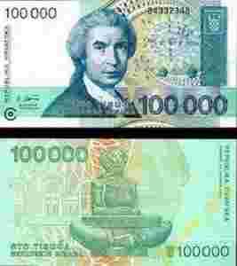 CHORWACJA 100000 Dinarów 1993 P 27 UNC