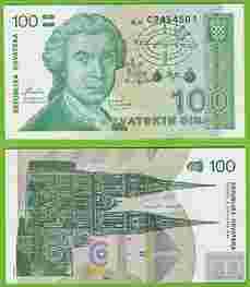 CHORWACJA 100 Dinarów P20a UNC 1991