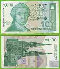 CHORWACJA 100 Dinarów P20a UNC 1991