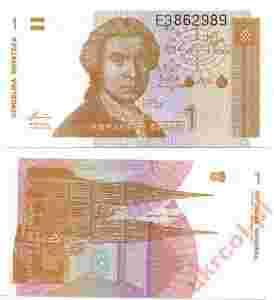 CHORWACJA 1 Dinar 1991 p16a UNC Stan I CROATIA.