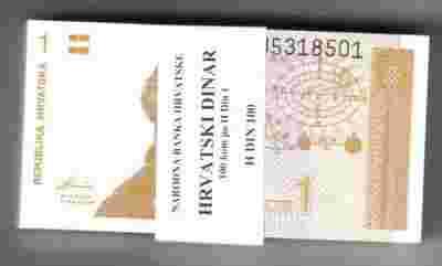 Chorwacja 1 Dinar P-16a UNC 100 szt.