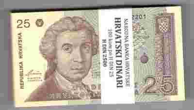 Chorwacja 25 Dinarów P-19a UNC 100 szt.