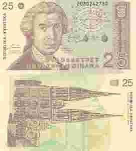CHORWACJA 25 Dinar 1991 P-19 UNC
