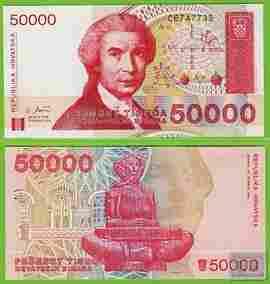 CHORWACJA 50000 Dinara P26a UNC 1993