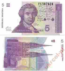 CHORWACJA 5 Dinarów p17a Stan I UNC 1991 Dinars CROATIA.