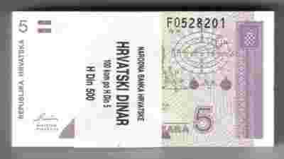 Chorwacja 5 Dinarów P-17a UNC 100 szt.